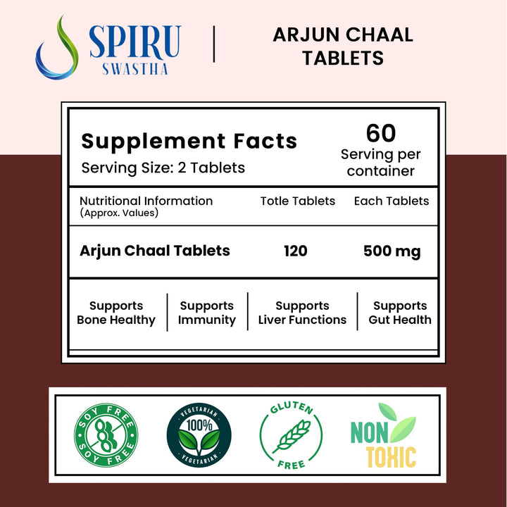 Take 1–2 Arjun Chaal tablets daily with water, preferably in the morning, or as advised by a healthcare provider.