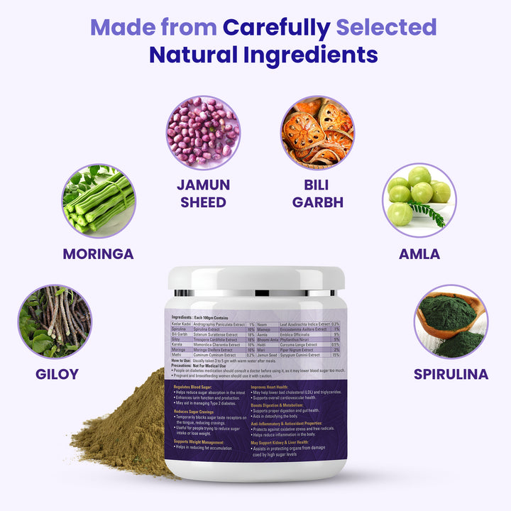 Madhunashini helps in maintaining healthy blood sugar levels by reducing glucose absorption in the intestines and enhancing glucose metabolism. It prevents blood sugar spikes after meals, making it beneficial for diabetics and pre-diabetics. By controlling sugar fluctuations, it supports overall metabolic balance, ensuring that energy levels remain stable throughout the day.