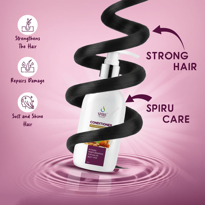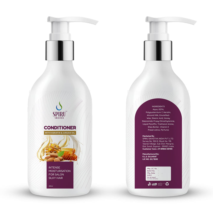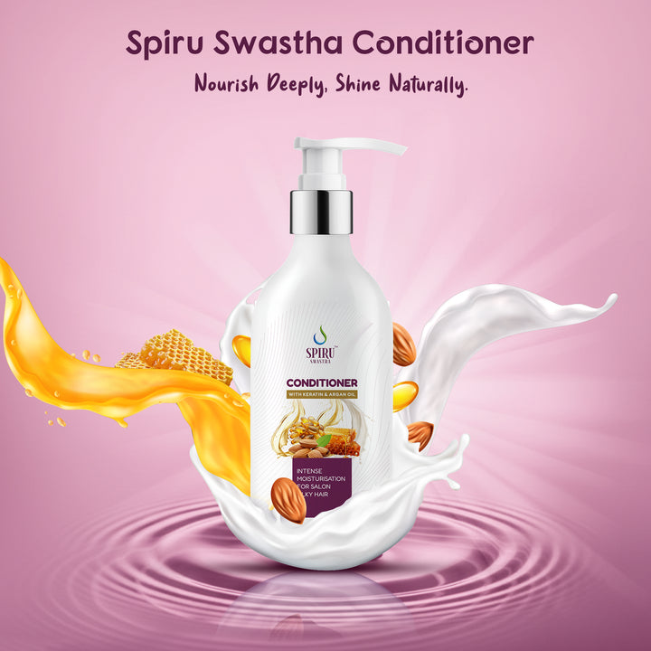 Spiru Conditioner Old Packing (300ml) is a premium Argan Oil Hair Conditioner formulated with Natural and Herbal ingredients to provide deep hydration and nourishment. Enriched with argan oil, it softens, smoothens, and repairs dry or damaged hair while controlling frizz and enhancing shine. Perfect for achieving salon-smooth results at home, this conditioner restores moisture balance and improves manageability without weighing hair down. Its gentle yet effective formula works for all hair types, including chemically treated and color-treated hair. Enjoy beautifully soft, healthy, and radiant Hair Care with this Natural and Herbal solution for everyday care.