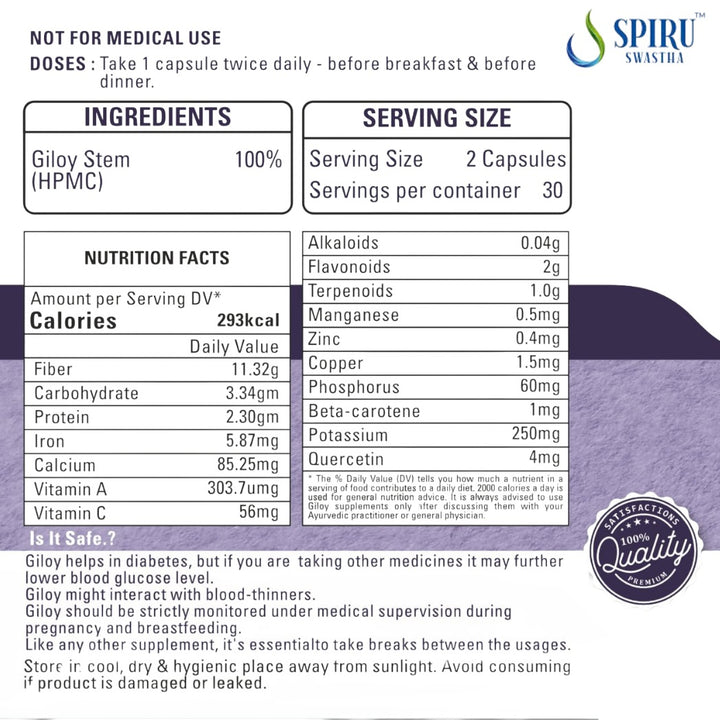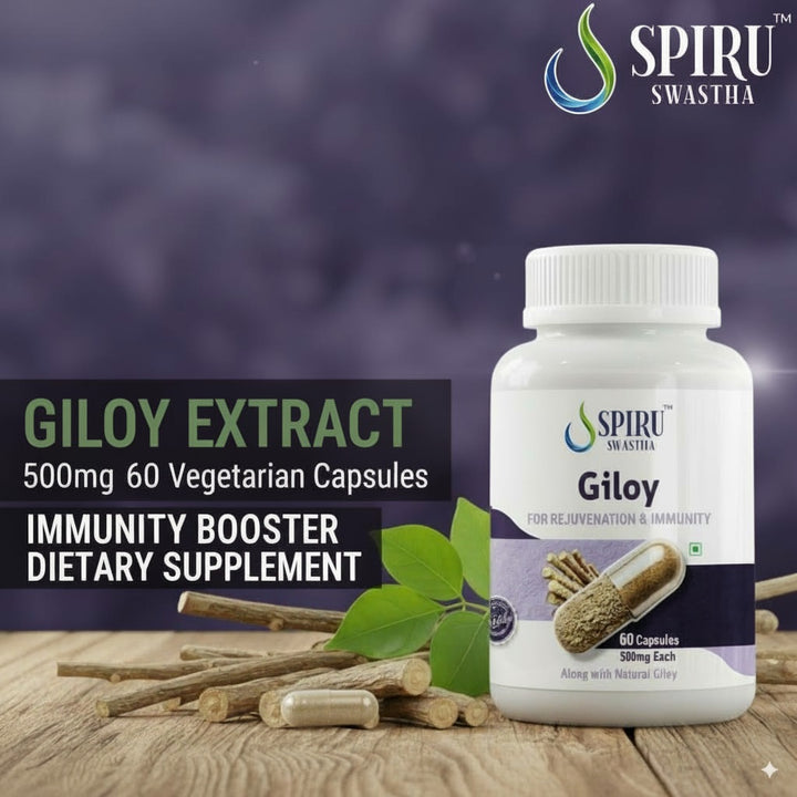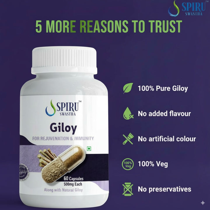Spiru Swastha Giloy Capsules | Natural Immunity Booster | Ayurvedic Guduchi for Respiratory & Joint Health