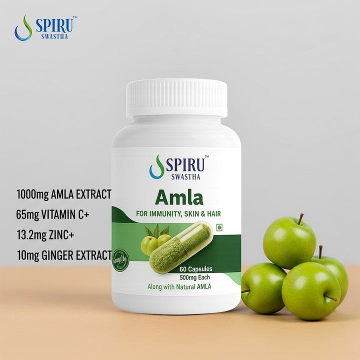 Spiru Swastha India Amla+ with Piperine | 100% Pure Herbal Supplement for Immunity, Skin & Hair Health | Rich in Vitamin C & Antioxidants | Supports Digestion & Anti-Aging | 60 Capsule