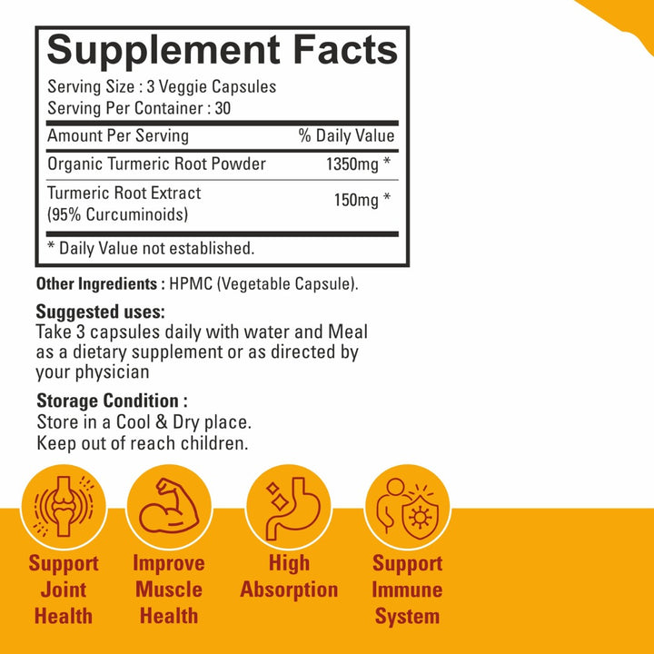 Enriched with Black Pepper (Piperine), the formula ensures up to 2000% better absorption, allowing your body to fully utilize the curcumin’s benefits.