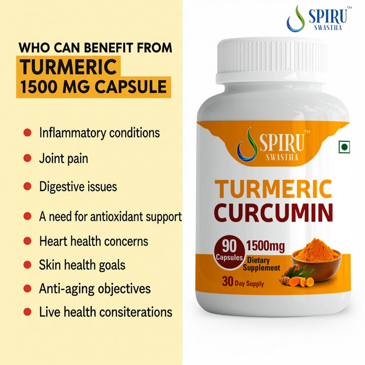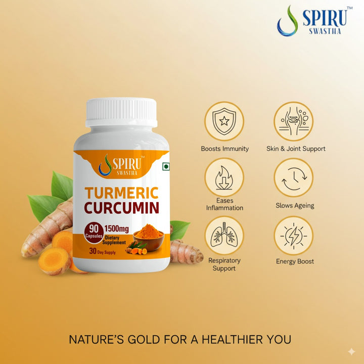 Spiru Swastha Turmeric Curcumin 1500mg with Ginger & Black Pepper | 95% Curcuminoids | Anti-Inflammatory, Joint Pain Relief & Immunity Booster Supplement for Men & Women